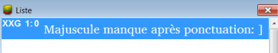 Le volet supérieur de ce dialogue affiche d'éventuelles erreurs dans un texte, la validité de chaque erreur (statut délibéré ou non délibéré) et sa fréquence. Il rest seulement 3 occurence à corriger plus tard dans XXA.